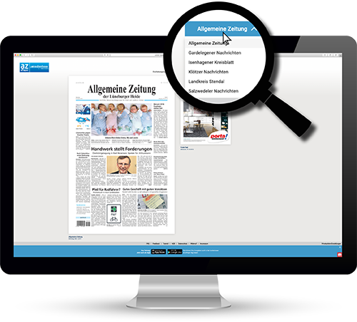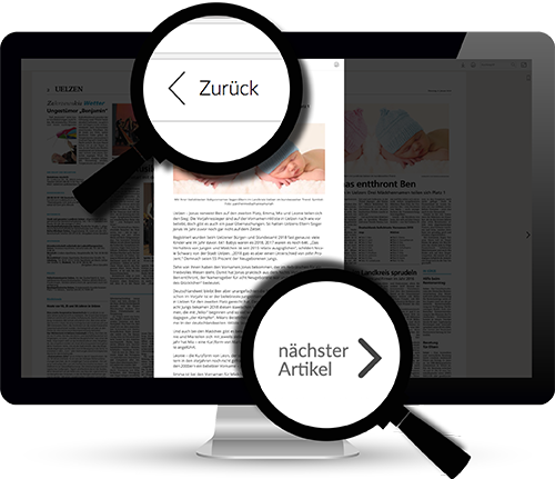 Durch Klicken auf einzelne Artikel öffnet sich die Artikelansicht. Über "Zurück" am oberen Ende der Artikelansicht kommen Sie zurück in die gewohnte Zeitungsansicht. Über die Pfeile am unteren Ende der Artikelansicht können Sie in den nächsten Artikel wechseln ohne die Artikelansicht zu verlassen.