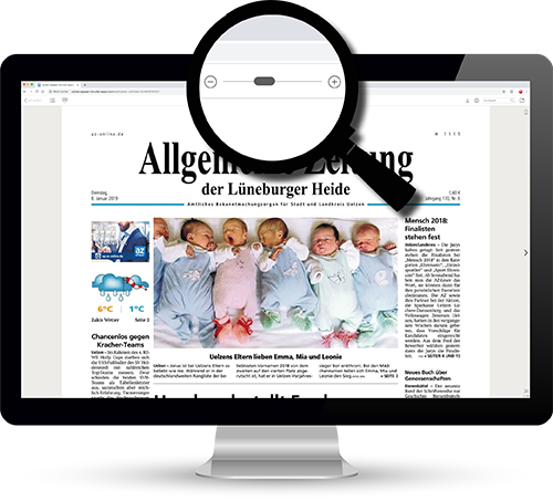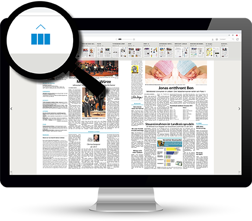 Mit Ihrem Mausrad oder durch Verschieben des Reglers können Sie in Zeitungsseiten hinein- und herauszoomen.