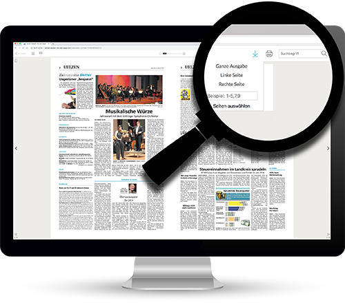 Suchen Sie innerhalb Ihrer Ausgabe nach Schlagwörtern und drucken Sie interessante Seiten aus. Sie können zudem die ganze Ausgabe oder auch nur einzelne Seiten herunterladen und auf Ihrem PC speichern.