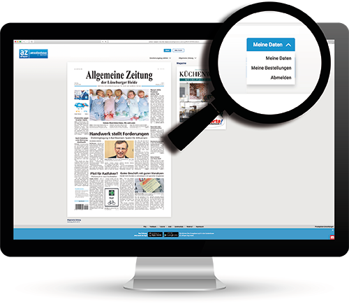 Im angemeldeten Zustand können Sie im Bereich "Meine Daten" Ihre persönlichen Daten einsehen, Ihr Passwort ändern und eine Übersicht Ihrer getätigten ePaper Einkäufe erhalten.